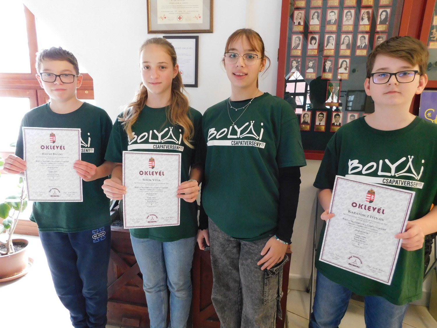 Iskolánk diákjai minden évben sikeresen szerepelnek a Bolyai Anyanyelvi Csapatverseny körzeti fordulóján. Az általános iskolások közül idén hét csapatunkat díjazták, két csapatunk pedig az országos döntő írásbeli fordulóján is képviselte intézményünket. Szeretettel gratulálunk a versenyzőknek és a felkészítő tanároknak!